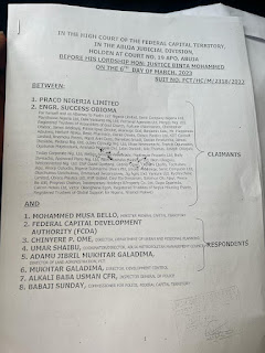 The exparte motion was drawn from a suit filed by Engr. Success Obioma, Praco International Ltd, Psalm 127 Ltd, and Peace Be Still Ltd, (Claimants) against the FCT Administration.